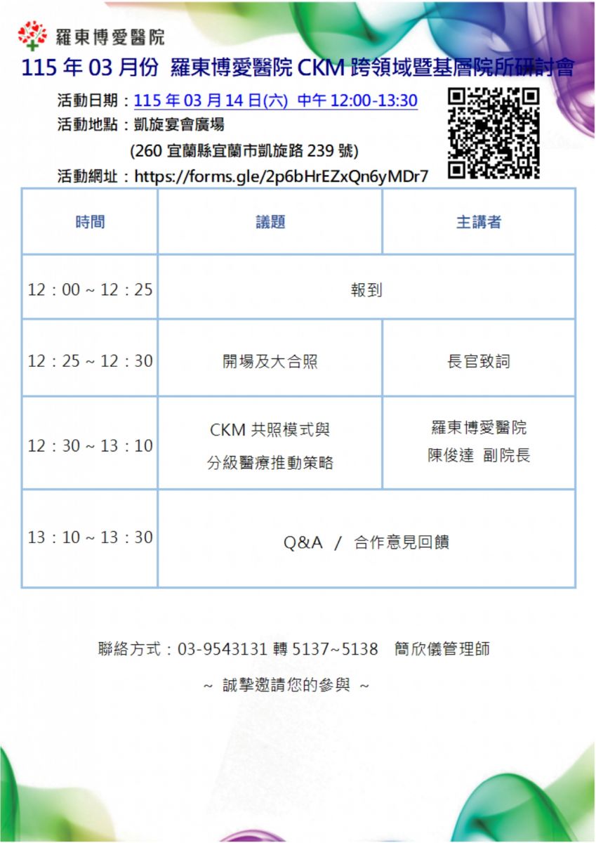【115年03月份 羅東博愛醫院 CKM跨領域暨基層院所研討會】